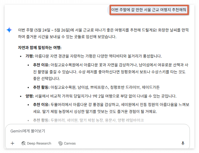 - 간편한 사용법: 웹 브라우저에서 gemini.google.com에 접속해 로그인만 하면 즉시 AI와 대화할 수 있음